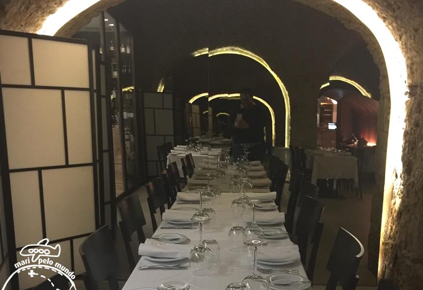 Era um antigo palacete então já se espera todo este requinte. Em alguns arcos eles colocaram espelhos. A mesa reflete no espelho dando uma ideia de profundidade
