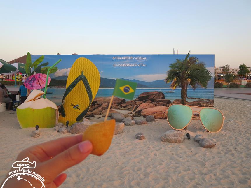 Sim! Repare bem que estávamos em Dubai.. mas as comidinhas desse Food truck na Kite Beach incluia: caipirinha (sem álcool), coxinha, pastel, mandioca frita, açaí, brigadeiro, água de côco, pão de queijo e tapioca.