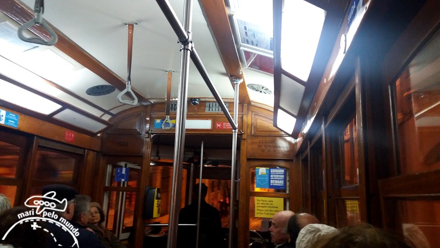 O bonde passa por lojas, livrarias e casas, mas também passa pelo elevador da Bica e o Miradouro de Santa Catarina.