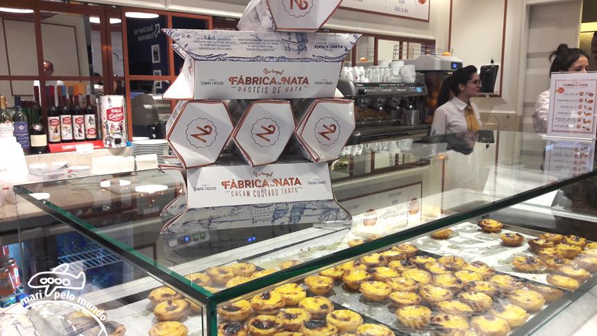Uma delas é a Fabrica de nata. Logo na entrada, pose-se ver a preparação pelo vidro. Uma beleza. No balcão você faz sua escolha para comer ali ou levar nas embalagens.