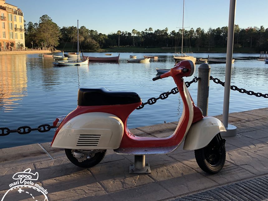 Esse é o meu preferido! Um luxo nas acomodações e no visual. O Portofino Bay é inspirado na vila de Portofino na Itália. E realmente parece que você está na praça central de uma pequena cidade italiana.