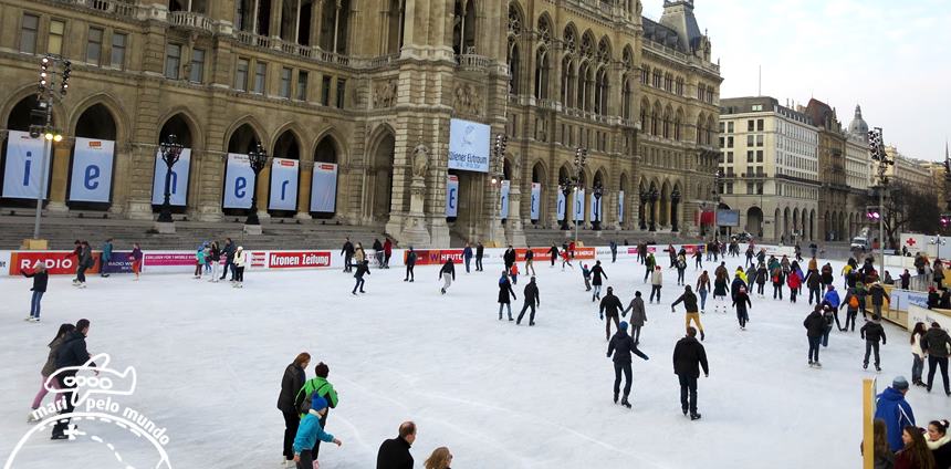 O prédio da prefeitura de Viena (Rathaus) é lindíssimo e a pisa de patinação é montada em frente a prefeitura. As pistas tem ao todo uma área de 7.000 m2. Normalmente as pistas que são montadas nos shoppings centers do Brasil tem em média 300 m2. A fachada da prefeitura fica toda iluminada a noite. Um conto de fadas para os fãs de patinação. A noite, a pista principal recebe luz de discoteca, com DJ e musicas para todos os gostos.