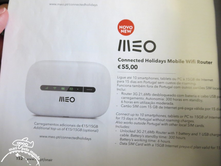 Uma opção para quem viaja em família ou grupo de amigos (e andam juntos) é o Router. Há diversas marcas. Não usamos mas vimos este anúncio no avião. É bem interessante, você compra o aparelho (ou aluga – no caso a Webspot) e pode conectar 10 aparelhos e ter um plano de 15 GB para usar em 15 dias.