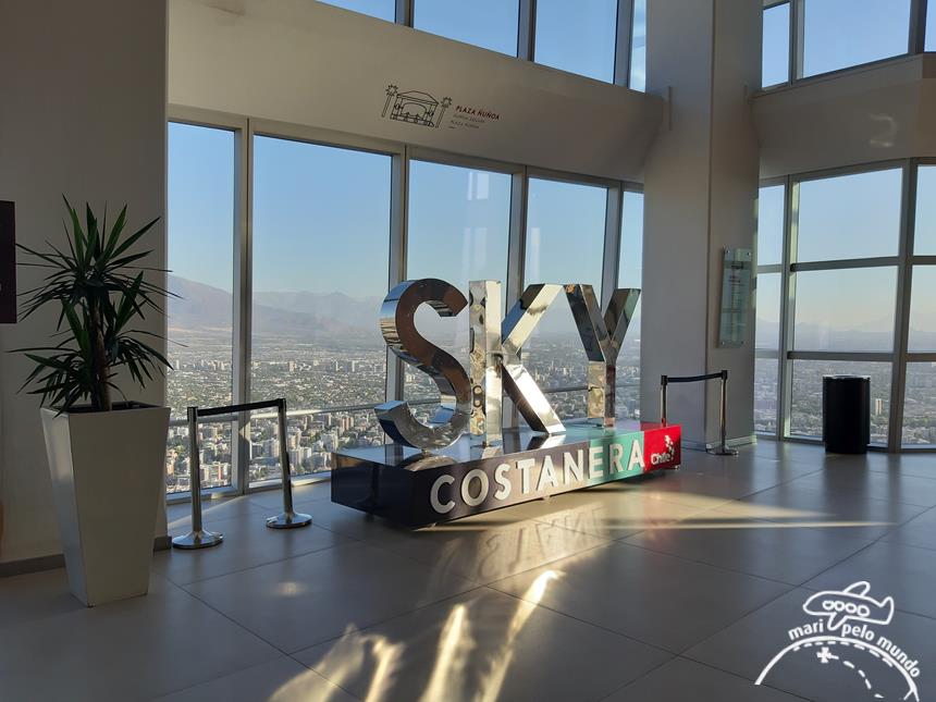 São 62 andares e 300 metros de altura. Dentro do shopping, desça um piso e você vai encontrar a bilheteria e a entrada do Sky Costanera. O preço custa em torno de 19 dólares. Para uma família grande, é um valor significativo. Se subir, aproveite ao máximo a visita. O lugar é lindo e realmente vale a pena passar um tempinho a mais e desfrutar o lugar.