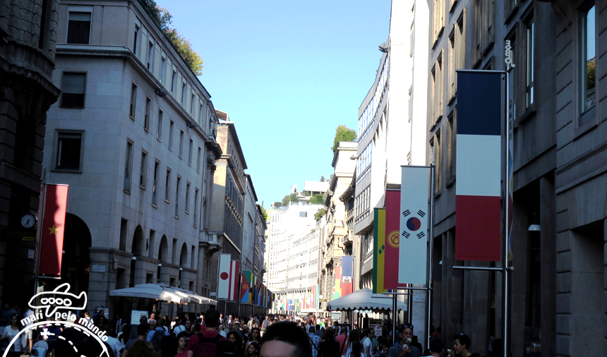 Lojas, sorveterias, restaurantes e a linda galeria. No “Corso” ao lado de fora, mais lojas, gelatto, restaurantes e muita gente circulando.