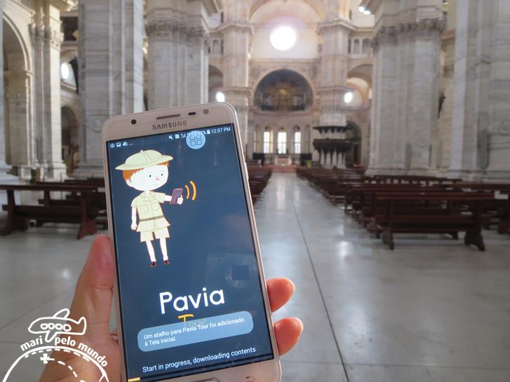 Como eu estava sozinha passeando pela cidade, baixei o aplicativo de Pavia para encontrar os pontos históricos e ler um pouco a respeito. Ótimo aplicativo! Fica a dica