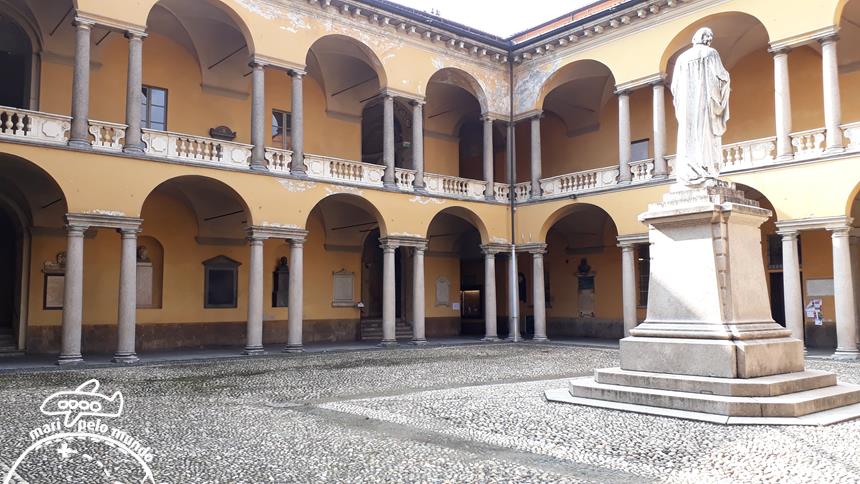 A Universidade é um ponto turístico também. Foi fundada em 1361. É uma das mais antigas DO MUNDOOOO. Até o século 20 só existia essa na Lombardia. Para se ter uma ideia, a cidade tem 70 mil habitantes e 24 mil são estudantes da faculdade.