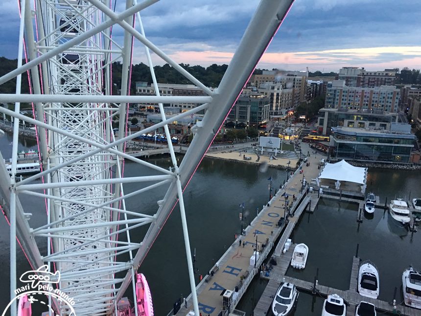 A roda gigante à beira do Rio Potomac talvez seja o grande motivo por ter me encantado tanto com o lugar. Afinal sou apaixonada por rodas gigantes. E não perco a oportunidade quando vejo uma nos destinos que visitamos.