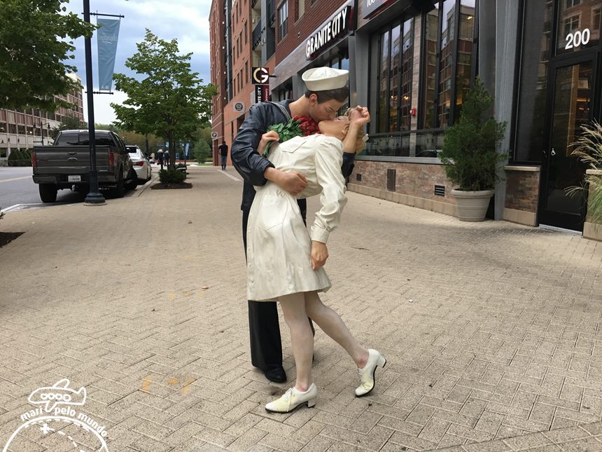 E também uma estátua da icônica imagem do beijo que marcou o final da segunda grande Guerra Mundial, pelas lentes do fotógrafo Albert Eisenstaedt para a revista Life.