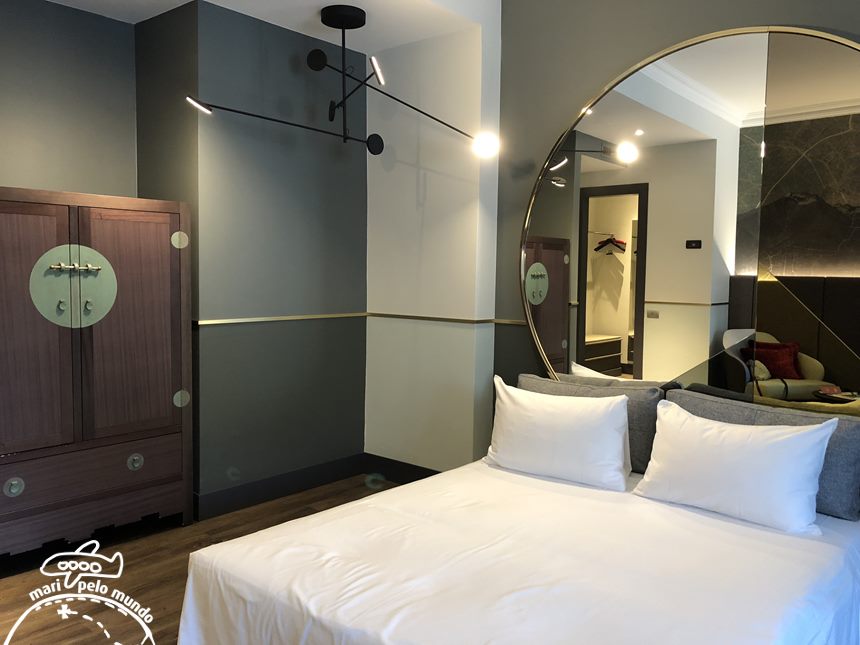 O hotel é novo, foi inaugurado em 2017, e tem quartos espaçosos e muito confortáveis. Ideal para quem viaja com crianças, pois tem uma cama extra no quarto.