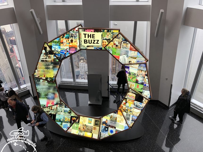No elevador uma projeção que faz uma viagem no tempo, mostrando como a cidade mudou ao longo dos anos. E em apenas 47 segundos já estamos no 102ºandar!