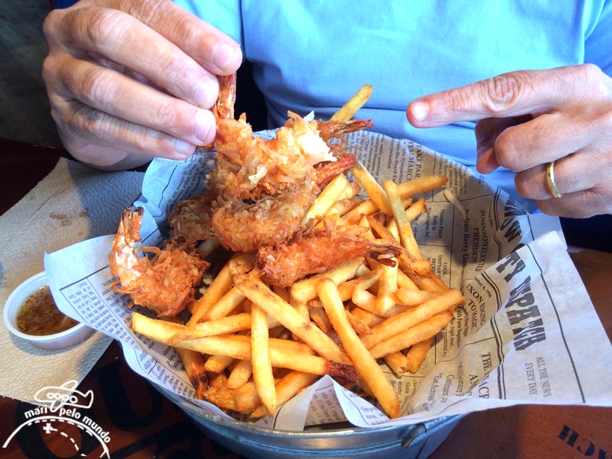 O salmão é muito gostoso (dividi com meu filho uma vez, dá para mãe e filho comerem bem! Peça uma porção de fritas, afinal é a terra da boa batata frita!). O camarão empanado frito é um dos destaques do cardápio – Popcorn shrimp! E a salada Ceasar com camarão!