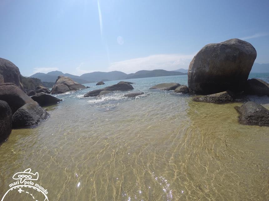 Nessa ponta tem outra cadeia de pedras tão lindas quanto as outras. São essas pedras que delimitam o começo e o fim de Lopes Mendes, e foi nesse canto também que as águas vivas resolveram me dar um oi bem quente, mas acho que isso não é normal, deve ter sido essa ressaca, eu mergulhei de novo na outra ponta e não me queimei.