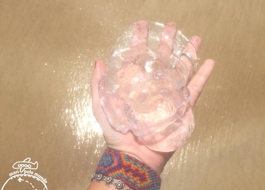 O Rico, nosso anfitrião, falou que houve ressaca no dia anterior, e dava para notar muita água viva morta na areia, muita mesmo! A praia é extensa, mas se tiver disposição, é possível caminhar de ponta a ponta em mais ou menos uma hora.