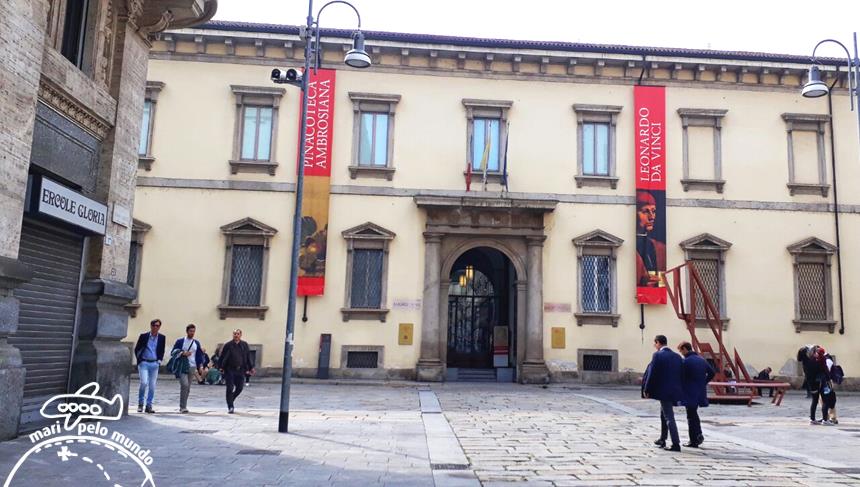 Um dos passeios que vale muito a pena em Milão é a Pinacoteca e Biblioteca Ambrosiana. Fica pertinho do Duomo e é lindíssima. A entrada é 15 euros (Out/2017) e são 24 salas com esculturas, peças e quadros. O tempo mínimo de visita é de uma hora para percorrer as 24 salas.