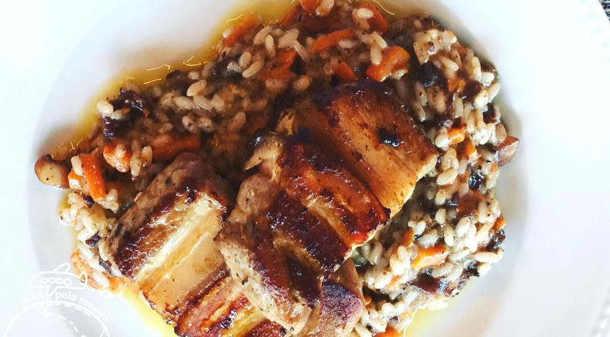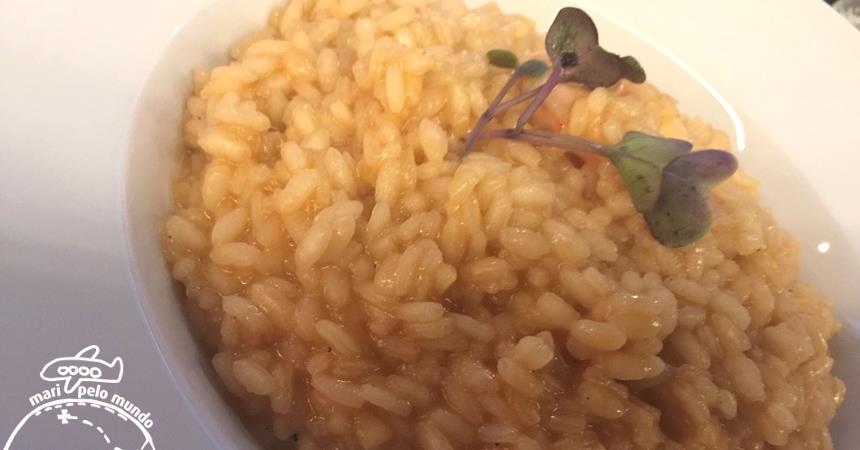 De prato principal temos risottos: um risotto de camarão, um Risotto de frutos do mar e o outro Risotto (o meu preferido) que é de abóbora e marcela com uma barriguinha de Porco no ponto! Super incrível!