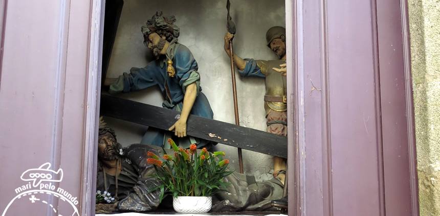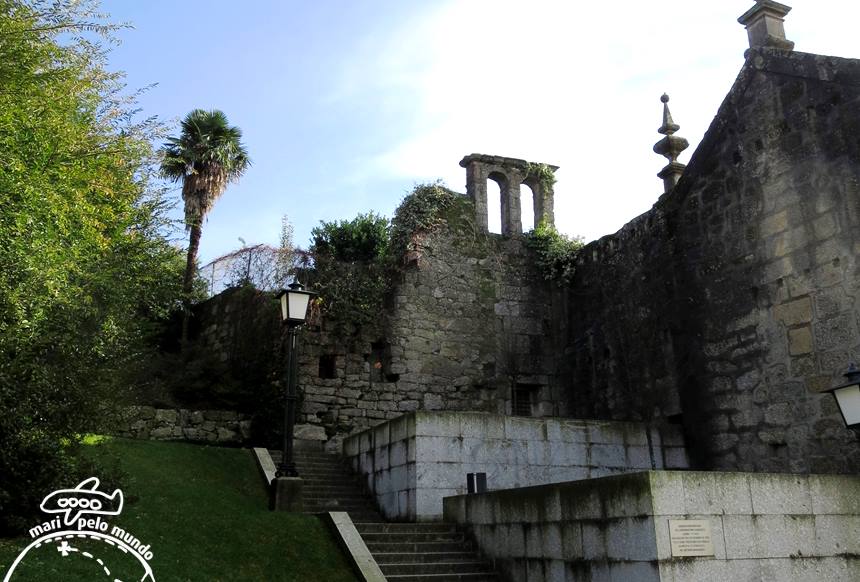 A pequena capela a direita chama-se São Miguel do Castelo, local onde supostamente dom Afonso teria sido batizado.