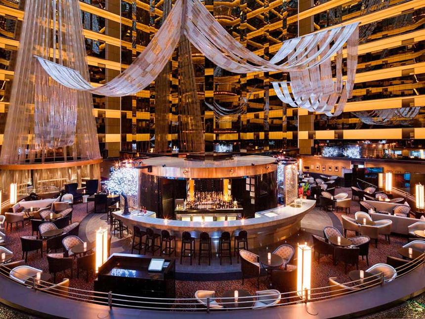 O hall do hotel tem o centro livre, e isso o torna magnifico. Toda a decoração é impecável e muito luxuosa. Possui um Shopping integrado ao hotel e restaurantes, o que facilita bastante.