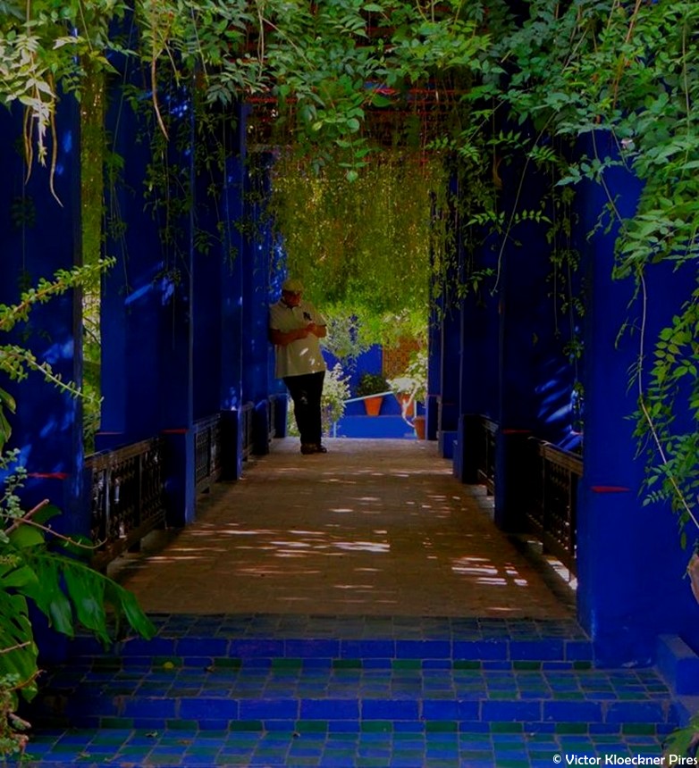Fomos ao Jardin Majorelle, situado no centro da cidade, impressionante jardim tropical, cuja construção se dá a partir da década de 30, pelo pintor Jacques Majorelle. Algum tempo depois, na década de 60, o jardim sofre a influência de Yves Saint Laurent, que nos apresentar o espetáculo que se desvela por nossos olhos.