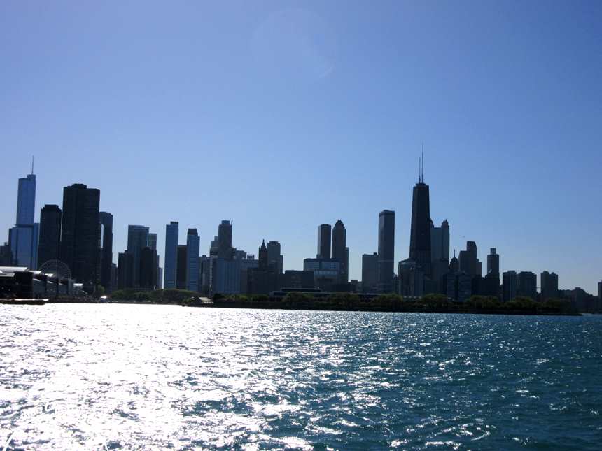 Chicago vista do Lago Michigan. Uma cidade de “skyscrapers”.