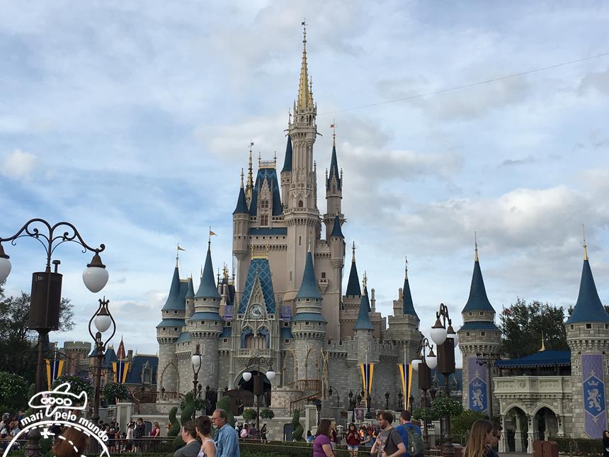 O Castelo de Cinderela, o ícone do parque Magic Kingdom foi todo repaginado para a celebração. O castelo ganhou novas cores com a reabertura do parque. E também um enorme medalhão comemorativo dos 50 anos.