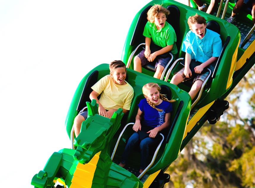Mais uma montanha-russa, agora na terra da aventura, um passeio pela terra de dinossauros de Lego. A Coastersauros é uma divertida montanha russa de madeira para as crianças acima de 1,07 metros.