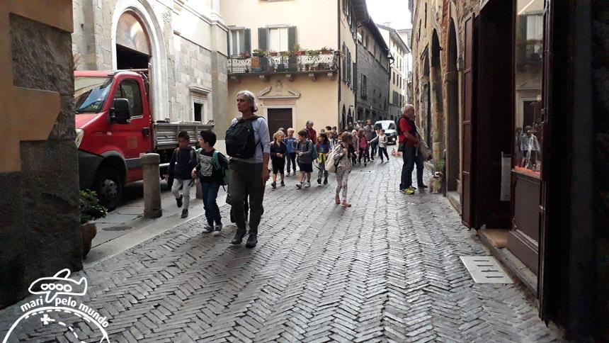 O que eu amei em Bergamo? A cidade murada é algo que não é comum para nós. Inclusive é um lugar ótimo de ir com as crianças. Por onde passei vi vários grupos escolares e depois fiquei sabendo que é um destino que as crianças italianas costumam conhecer com a escola.