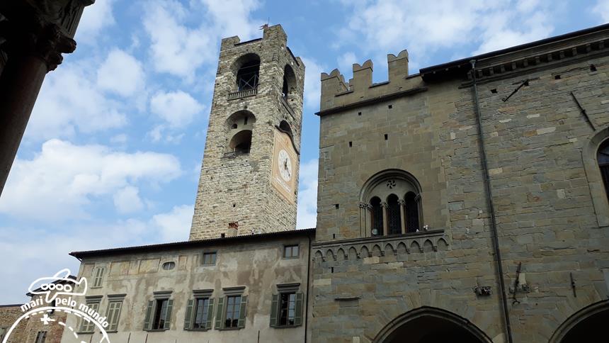 - Na Piazza, aprecie o prédio da biblioteca mais antiga da Itália Biblioteca Angelo Mai, a Universidade e a torre de 52 metros de altura (Torre Civica ou Campanone – residência da importante família Suardi de Bergamo. Para-se para entrar.)