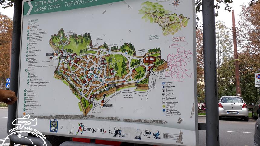 A cidade de Bergamo é dividida em Città Alta (“Cidade Alta”) e Cidade baixa. A cidade alta é murada e cercada por sistemas venezianos que são Patrimônio Mundial da UNESCO desde 9 de julho de 2017. A Cidade baixa é uma cidade italiana normal, o que significa que é bonita também.