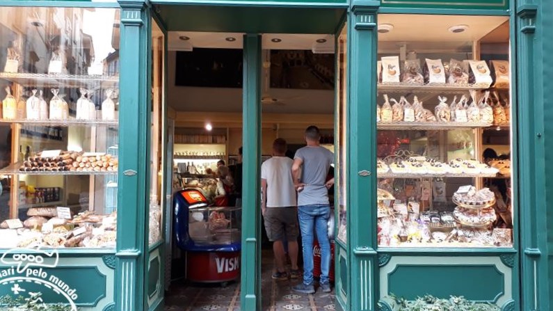 A comida italiana é toda gostosa, mas em algumas cidades há comidinhas típicas ou doces típicos. Em Bergamo,, o doce que está em todas as vitrines é a Polenta. Quem comeu me fala o que achou. Polenta Osei é um pão de ló recheado de mascarpone e com um passarinho de chocolate por cima, por isso que se chama polenta passarinho.