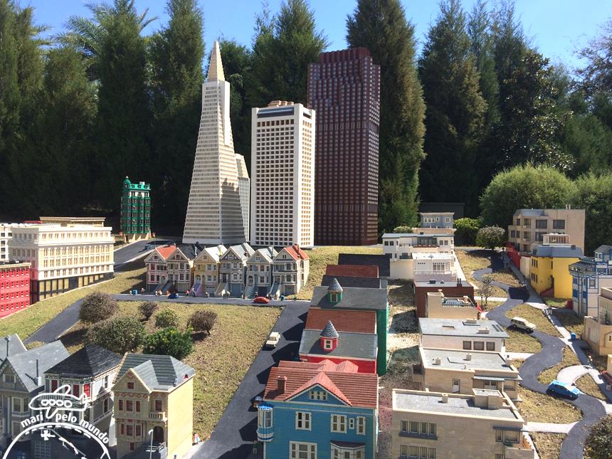 Na Califórnia as miniaturas retratam as famosas casas em estilo vitoriano de São Francisco, a Golden Gate e também o maior símbolo de Hollywood, o letreiro, só que por aqui ele teve uma pequena alteração e virou Legowood!