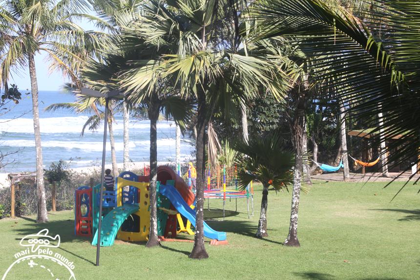 Além de playground, o hotel tem piscina climatizada, sauna e serviço de praia.