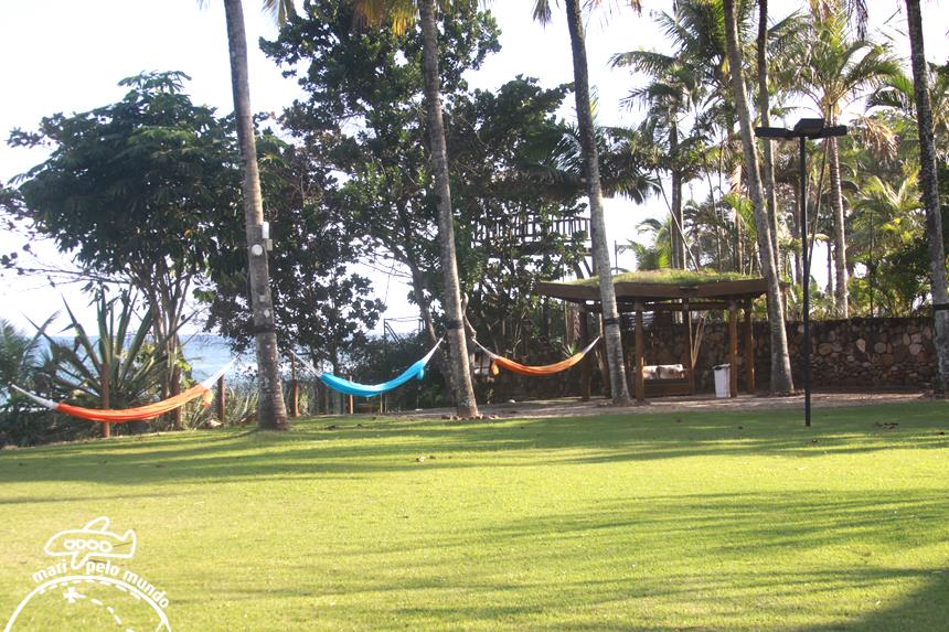 O jardim ainda conta com redário e uma área de descanso. Um convite ao ócio das férias!