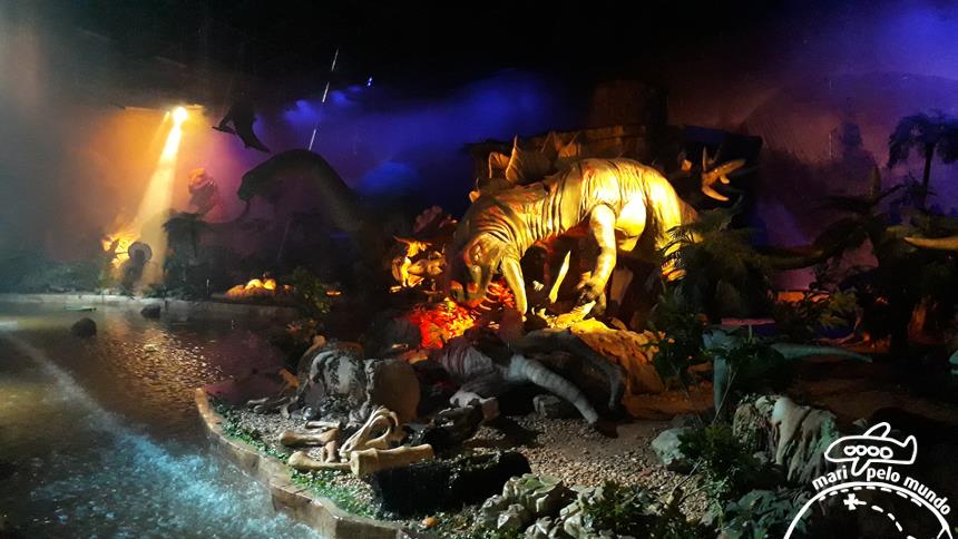 Parque com diversas atrações infantis, incluindo dinossauros, piratas, espaço da aventura e vila interativa.