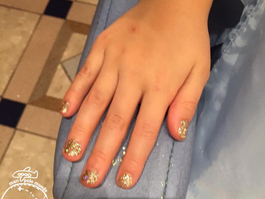 E me contaram que foi uma experiência muito legal, uma transformação com direito a maquiagem, cabelo, vestido, tiara, varinha e unhas pintadas, tudo para deixar a princesa pronta para o baile. E já que o salão é da fada madrinha da Cinderella, tudo é feito com muita magia e varinhas de condão.