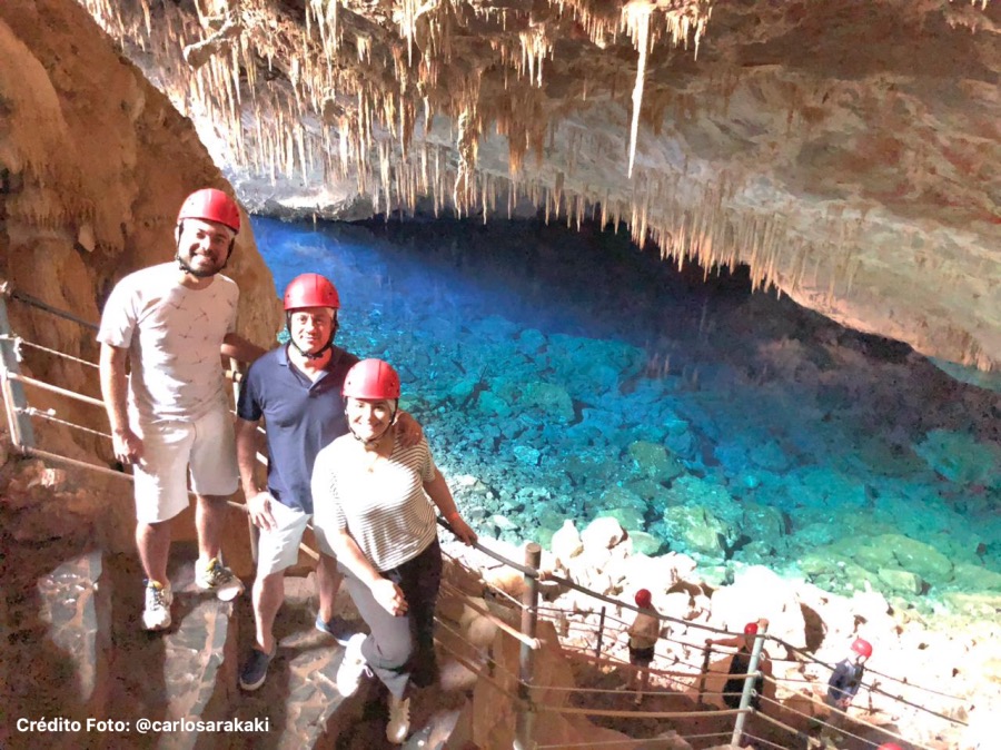 Primeiro você passa por uma fenda bem estreita no chão para depois descer de rapel pro 72 metros de altura. No final um lago muito cristalino, onde é possível fazer flutuação ou mergulhar com cilindro. Esta segunda opção é somente para quem já é mergulhador certificado.