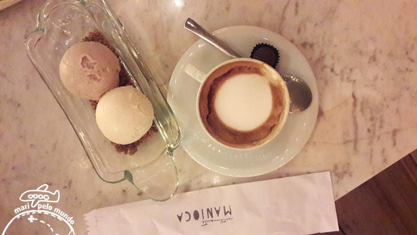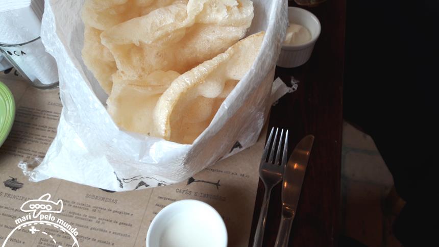Minha escolha foi o café gelado. Além de gostoso, bem servido e bonito, ainda veio com esse brigadeiro. Amei. Uma comidinha bem tradicional da casa é o biscoito de polvilho. Feito pelo próprio restaurante, vem em um saco e acompanha requeijão e cream cheese. Sai em torno de 20 reais mas vale a experiência.