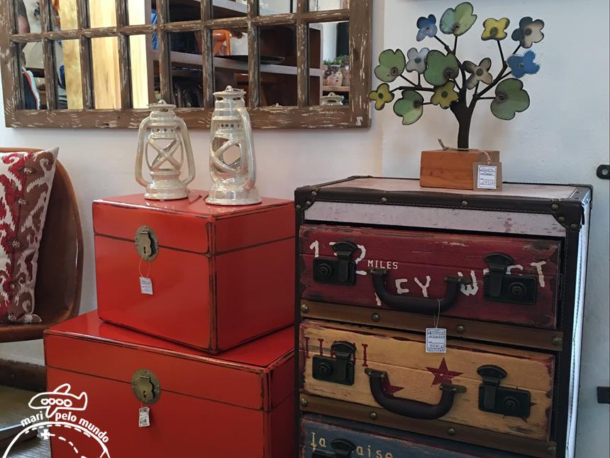 Lustres, quadros, louça, vasos, arranjos de flores. Mesas, aparadores, espelhos, baús. Ah, os baús! Eu que adoro baús, fiquei com vontade de ter espaço em casa para levar vários deles!