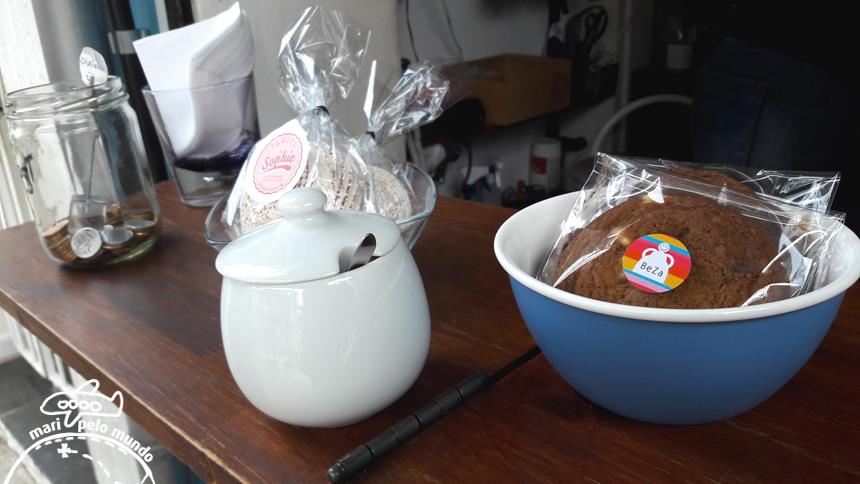 Para comer na hora ou para levar para casa. Apesar de ser pequeno, há duas mesinhas na calçada para apoiar o café e bater um papinho.