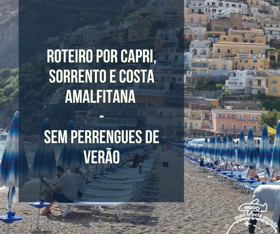 As cidades da costa amalfitana são lindas e você pode passar um dia em cada uma ou dormir nelas também se não se importar com trocas de hotel. Duas cidades interessantes para dormir na costa é Amalfi e Positano, mas há alternativas dependendo do seu orçamento. Estas cidades são mais caras. E vale a pena dormir em Capri? Depende de quantos dias for sua viagem e seu orçamento.