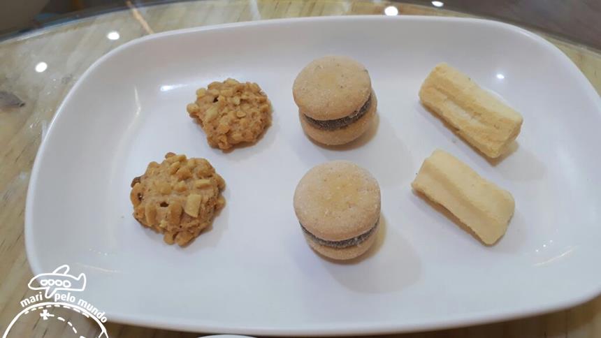 Aproveitamos para fazer uma degustação de vários biscoitos. O de amendoim, o casadinho de brigadeiro e o sequilho diet foram alguns deles.