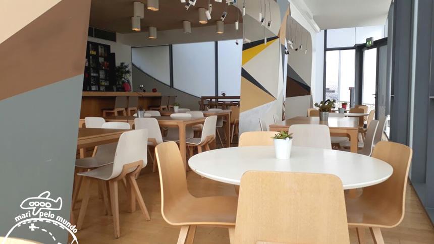 Há também um café/restaurante. O Café tem uma varandinha linda. Em dias quentes deve ser delicioso aproveitar o espaço e a vista.