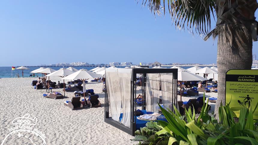 Fica em frente a praia privada da JBR Walk. Além dos vários restaurantes, há piscina para crianças e adultos, as cadeiras e cabanas de praia lindas, o hammam, lounge, Spa, tratamentos estéticos, bar da piscina, piscina aquecida, hidromassagem, sauna, academia… isso tudo, para os hóspedes do hotel.
