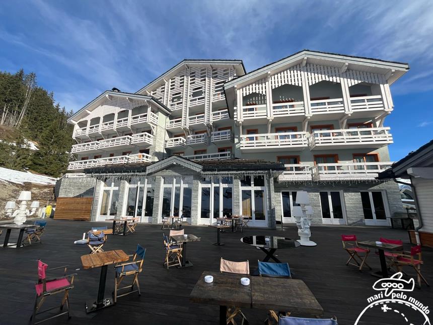 O hotel é ski in ski out se você tiver um nível intermediário de ski para pista vermelha.