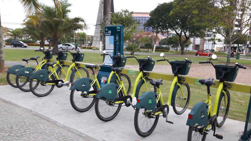 Muitas bicicletas espalhadas pelas estações na cidade. Consulte este site http://www.bikevitoria.com/