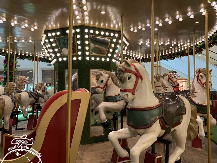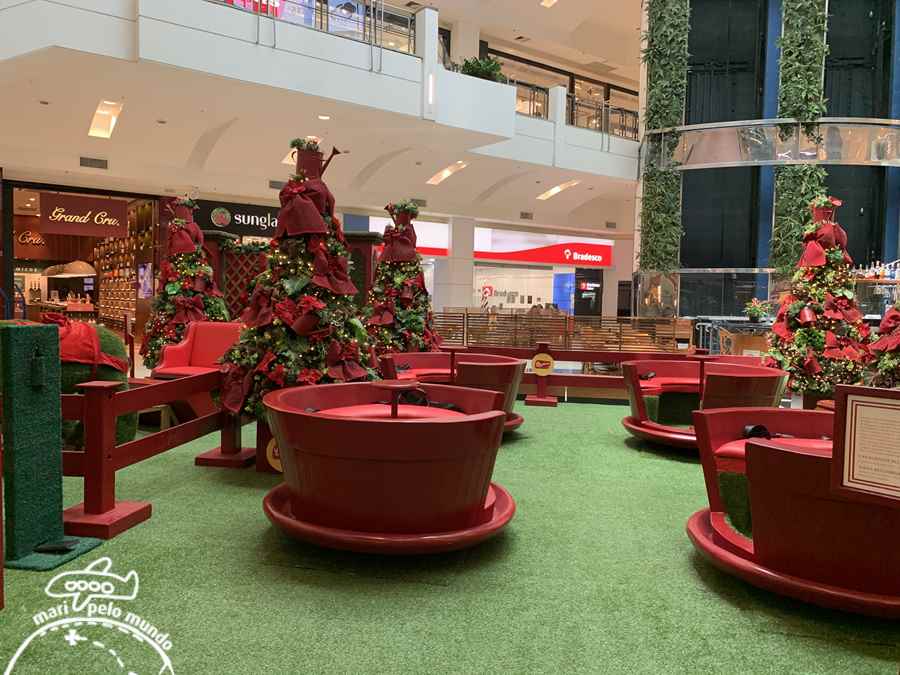 Sempre uma graça. E com atrações para os pequeninos se divertirem. Essa ano a decoração tem um Jardim Encantado com gira-gira e um lindo carrossel. Mas note que é somente para os pequenos abaixo de 1,30m. Meu filho ficou triste por já estar mais crescidinho esse ano!