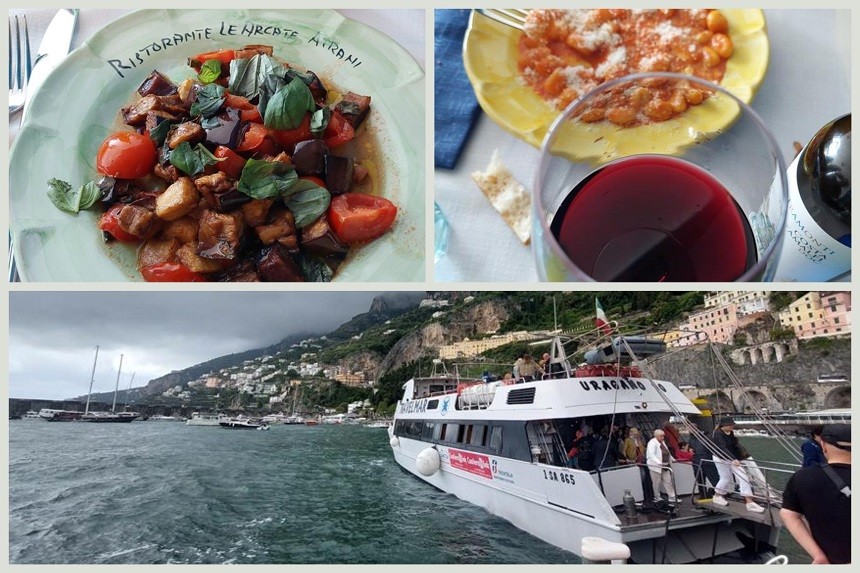 De Sorrento, há ônibus local da empresa SITA. Na alta temporada eles saem a cada 10 minutos e muito lotados, muita gente em pé a viagem toda que leva quase uma hora ou mais dependendo do trânsito. (e se estiver cheio, o ônibus nem para no ponto) De Ferry, na temporada, há saídas de Salerno e Sorrento, sempre cheios também, porém melhor que ônibus.