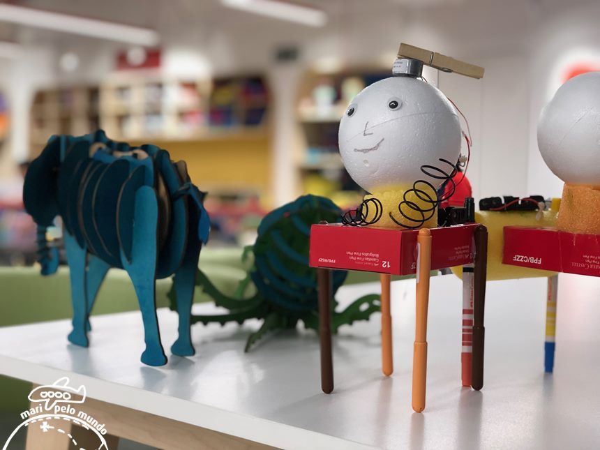 As atividades incluem quebra-cabeças em 3D customizados (levamos para casa um castelinho, um polvo e um robô desenhista!). Bonecos criados a partir do desenho e imaginação. Criação de máscaras e personagens, pintura, histórias e solução de problemas. Cada dia da semana uma programação diferente.