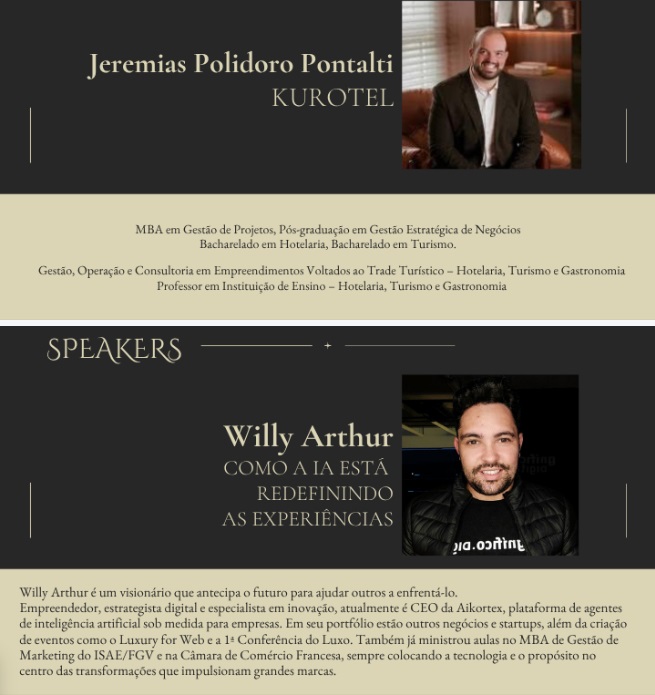 Tivemos o privilégio de conversar com os especialistas Paulo Carneiro, curador do renomado evento “Turismo no Luxo 2025”, além de Carla Caldas e Alan Guizi. Juntos, eles compartilham insights valiosos sobre as inovações em hospitalidade, o futuro das experiências exclusivas e como o mercado de luxo se adapta aos novos desejos dos viajantes.