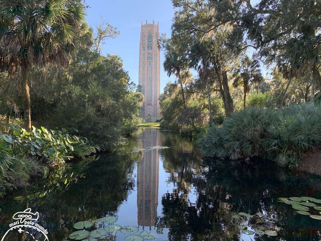 A Singing Tower é a peça central dos jardins. Ela foi construída no local mais alto do terreno ao sul de um lago que funciona como uma piscina de reflexão. A imagem refletida é realmente digna de fazer uma (ou muitas) bela fotografia!